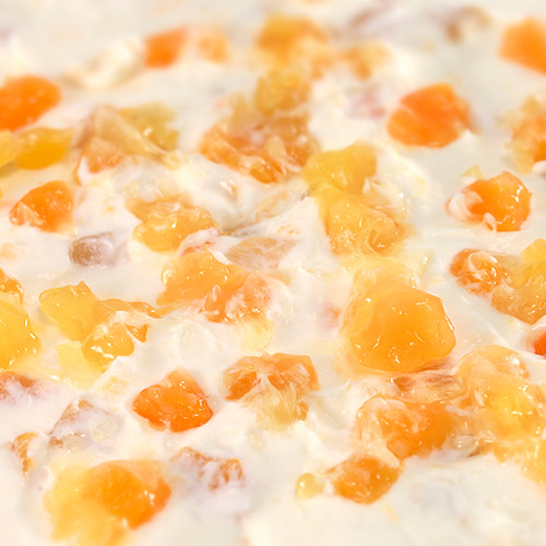 淡淡雪白清新雅香風味....... 法國頂級進口的原料,調合出精純的鮮奶香口感 再融入『鳳梨、杏桃、水蜜桃、百香果』新鮮的水果丁 讓人擁有不凡之中幸福滿滿的滋味.......