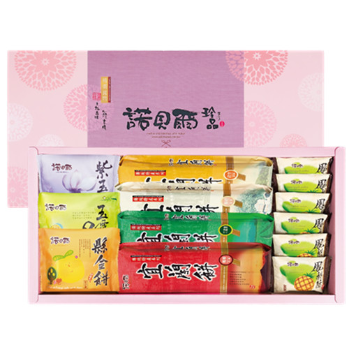 紫玉Q餅*1顆、玉露Q餅*1顆、縣金Q餅*1顆、宜蘭餅-楓糖*1包、宜蘭餅-三星蔥*1包、宜蘭餅-鮮奶*1包、宜蘭餅-起士*1包、鳳梨酥*6顆